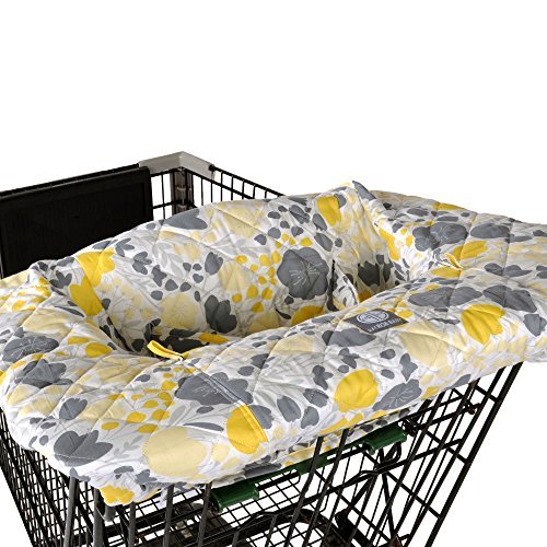 Doubles as a shopping cart or restaurant high chair cover; soft quilted material provides a secure environment for babies with a 360 degree germ-free zone;Combining simplicity and convenience, the cover features four elastic corners that secure it while providing easy one-hand installation; folds up so small that it can fit in your diaper bag so you will always have it with you;Wide safety strap comfortably keeps baby secure while attaching the cover to a shopping cart or high chair;Toy loops allow you to attach baby's favorite playthings;Beautiful 100% cotton featuring a yellow and grey floral design make this the height of fashion