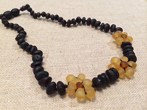 Baltic Amber 12.5 Inch Teething Necklace for Babies (Unisex) (Cherry Black Red Yellow Cognac Brown Lemon) Raw Unpolished - Baby, Infant, and Toddlers will all benefit. Anti Flammatory, Drooling & Teething Pain Reduce Properties - Natural Certificated Oval Baroque Round Baltic Jewelry with the Highest Quality Guaranteed. Easy to Fastens with a Twist-in Screw Clasp Mothers Approved Remedies! (Raw Cherry Flower) [並行輸入品]
