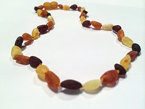 Baltic Amber Teething Necklace for Babies (Unisex) - Multi Cherry Cognac Lemon Milk Butter Raw Unpolished Anti Flammatory, Drooling & Teething Pain Reduce Properties - Certificated Natural Oval Baltic Jewelry with the Highest Quality Guaranteed. Easy to Fastens with a Twist-in Screw Clasp Mothers Approved Remedies! Soothing Calming Acid Reflux Baby Toddler Fever Red Cheeks