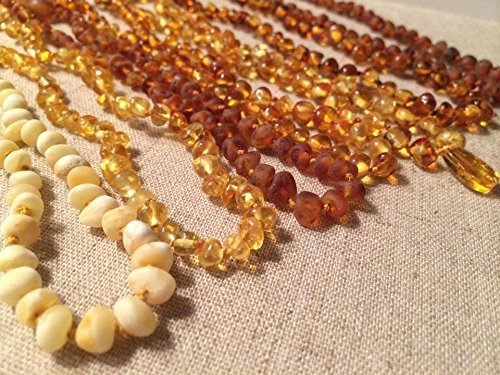 Responsive Customer Service, Fast Support, buy with confidence. US Based, Fast Shiping;Anti-inflammatory & Succinic Acid Immune Boosting Properties Imported from the Baltic and shipped from US. Same day shipment!;Baltic Amber Teething Necklace For Baby (Unisex) - Anti Flammatory, Drooling & Teething Pain Reduce Properties - Natural Certificated Oval Round Baroque Baltic Jewelry with the Highest Quality Guaranteed. Easy to Fasten with a Twist-in Screw Clasp Mothers Approved Remedies! Necklaces are approximately 12.5 inches for baby, Toddler, Big Kid, and bub.;Amber International Certified as well as sample tested locally. 100% Genuine Baltic Amber Teething Necklace, Therapeutic Quality, safety knotted amber bead for Baby, Babies, Bub, Toddler, & Big Kid. Anti-Inflammatory, Reduction of Drooling, Red Cheeks, Teething Pain. Highest Quality. Every necklace is knotted between each bead. The necklace comes with a safety screw clasp at the end.;Teething Necklaces are not for baby to chew on. The Amber releases microscopic amounts of oil, as it warms with the body's natural temperature, that is absorbed into the skin and bloodstream. Baltic Amber contains succinic acid (anti-fever, anti-inflammatory), the compound that gives Baltic Amber teething necklaces the therapeutic quality. Baltic amber is an organic substance, a