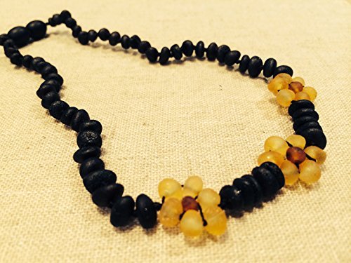 Baltic Amber 12.5 Inch Teething Necklace for Babies (Unisex) (Cherry Black Red Yellow Cognac Brown Lemon) Raw Unpolished - Baby, Infant, and Toddlers will all benefit. Anti Flammatory, Drooling & Teething Pain Reduce Properties - Natural Certificated Oval Baroque Round Baltic Jewelry with the Highest Quality Guaranteed. Easy to Fastens with a Twist-in Screw Clasp Mothers Approved Remedies! (Raw Cherry Flower)