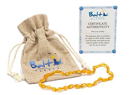Anti-Flammatory & Succinic Acid Immune System Boosting Properties. 100% Made Of Real Baltic Amber., Safety knotted (Amber Bead), Hand Crafted with the Highest Quality Standard on the Market., Must have product when new born child & toddlers begin teething., Teething Pain, Drooling & Fussiness Reduce., 32-33cm Long - 1 year Guarantee. Fast Support, buy with confidence!
