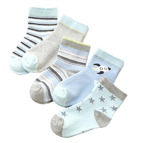 ( bambini ) 男の子 向け キッズ 靴下 5 セット 水色 ボーダー ロケット 子供 ジュニア サイズ (19-22㎝) …
