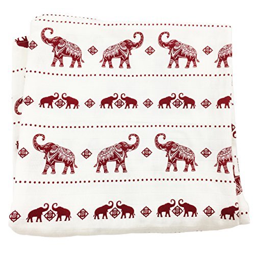 Bambino Land Big Bambino Bamboo Single Layer Muslin Blanket - Red Elephants [並行輸入品]