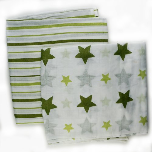 Stars & Stripes Green, Organic Muslin Swaddling Blankets 2 Pack by Bambino Land [並行輸入品]