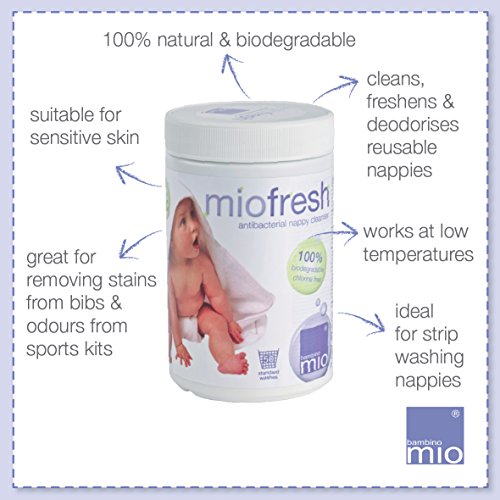 Bambino mio Fresh is an anti bacterial cleanser that freshens and deodorises reusable nappies at low temperatures.