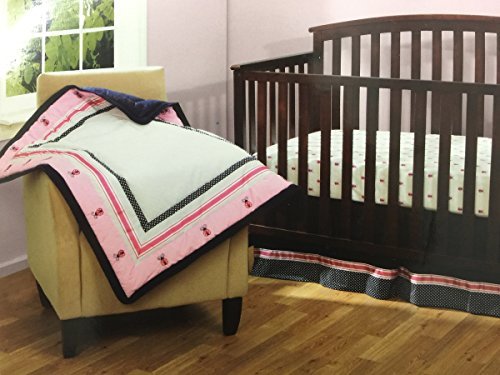 Bananafish Vineyard Collection 3 pc Baby Girl Crib Bedding Set Pink Ladybugs