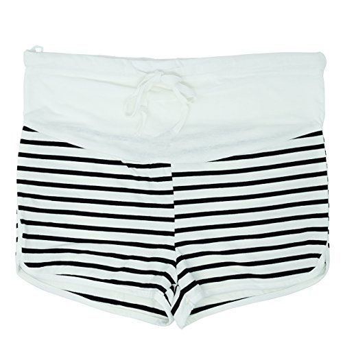Banane D'or マタニティ パンツ アジャスター スウェット ショートパンツ (白黒, M)