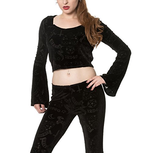Banned Apparel - 9 Lives Velvet Flare Sleeve Top XS