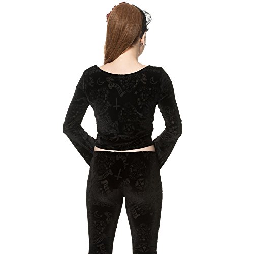 Banned Apparel - 9 Lives Velvet Flare Sleeve Top Features