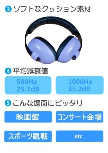 Banzから、可愛くて機能的な、子供用ヘッドフォンが登場 ・子どもの耳は大人よりもとっても敏感、大切なお子様の耳を大きな音からしっかり守りましょう! ・85デシベル以上の音量に8時間以上さらされる場合、耳の保護が必要と言われています。 ・映画館やコンサート、スポーツ観戦など大音量が気になる時の必須アイテム ・聴覚過敏のお子様にもオススメ ・耳あての部分はソフトなクッション素材で、耳周りをぴったり覆い、遮音性もアップしています。 ※ベビー用は締め付け感がソフトにできています ※耳に入る音を31デシベル減少 ※平均減衰値:500Hz、25.7dB ※平均減衰値:1000Hz、35.2dB ※米国規格協会の定める防音器具の基準に適合。 ※欧州の統一規格であるEN規格の定める防音器具・防護衣類等の基準に適合。