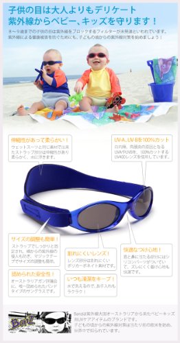 [サイズ] 2サイズ Baby(0-2歳用)、Kidz(2-5歳用) [素材]サングラス:ポリカーボネイト。可視光線透過率11%。EPF10で紫外線100%カット。UV400レンズ使用。 ストラップ部分:ネオプレインゴム。 [品名]サングラス