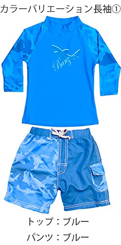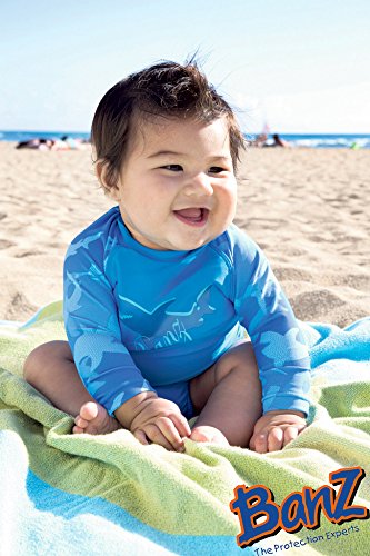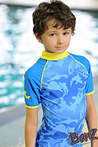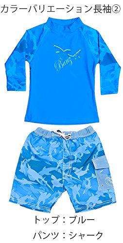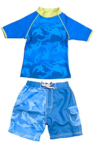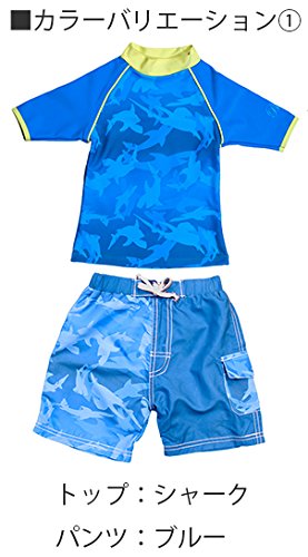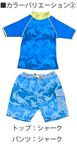 Banz UPF50+ 紫外線カット 男の子用水着セット サイズ0(ラッシュトップ半袖シャーク、ハーフパンツ ブルー)