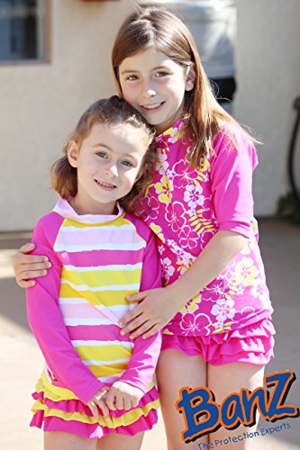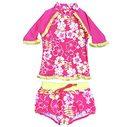 Banz UPF50+ 紫外線カット 女の子用水着セット サイズ1(ラッシュトップ長袖ピンクフラワー、ラッシュショートパンツ ピンクフラワー)