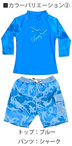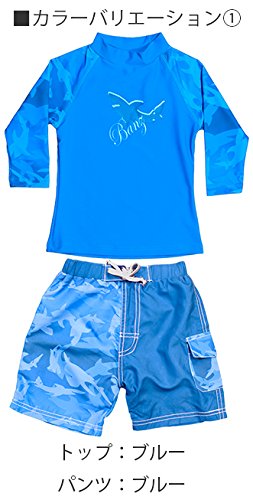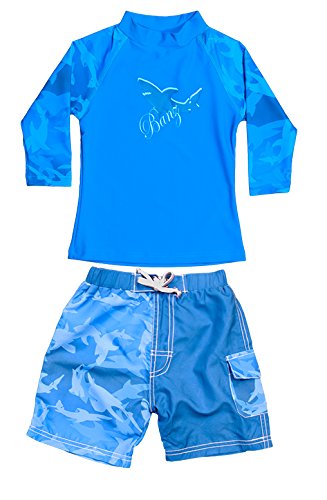 Banz UPF50+ 紫外線カット 男の子用水着セット サイズ0(ラッシュトップ長袖ブルー、ハーフパンツ ブルー)