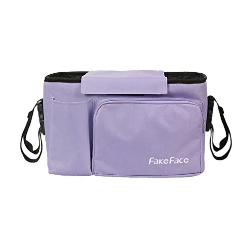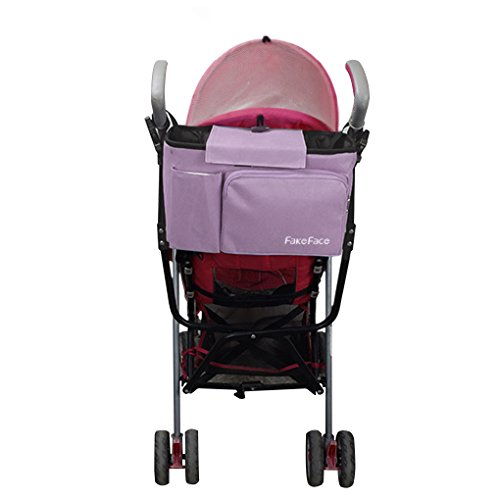 ベビーカー収納バッグ ベビーカー用多機能小物入れ ドリンクホルダー 軽量便利なベビーカー用カバー 取り付け簡単 持ち運び便利 ベビーカー用収納ポーチ マーザズバッグ ストローラーオーガナイザー 32*16*18CM パープル