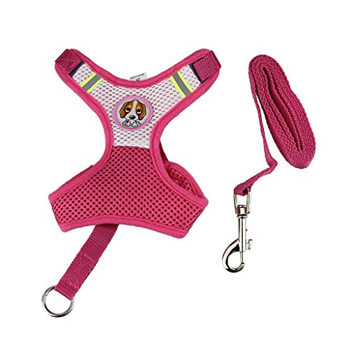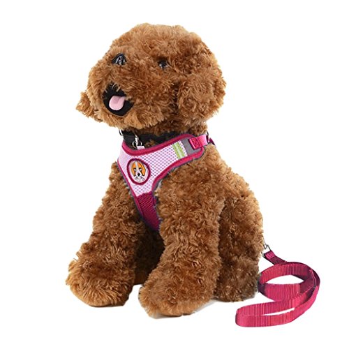犬ハーネス可愛い ペット用品 中小型犬用品リード クッションメッシュ 首輪 胴輪 ハーネスとリードの2点セット ハーネスおしゃれワンちゃん ドッグ用品 お出かけ、散歩用品 バラ色 M