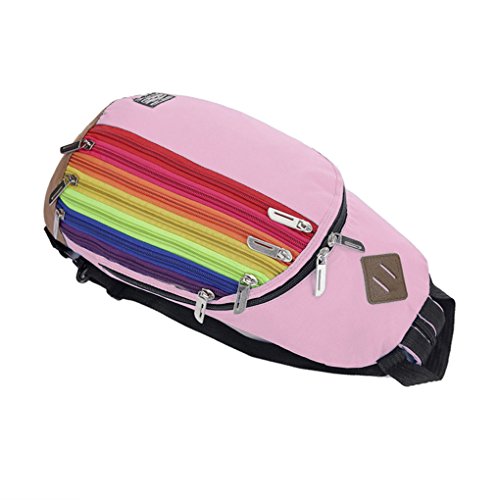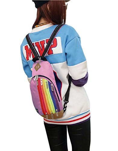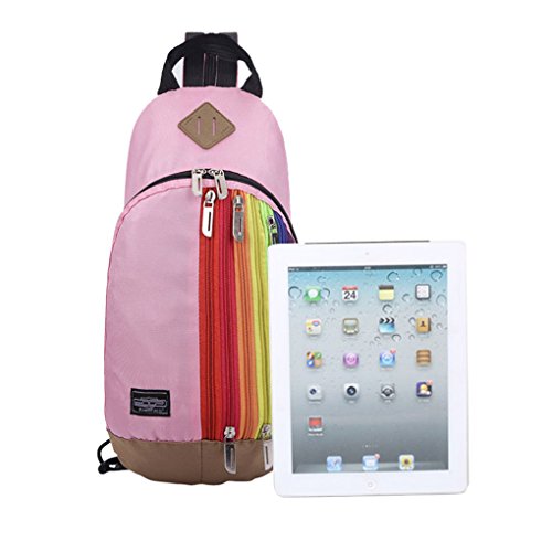 ボディーバッグお洒落 ワンショルダーバッグ 3Way リュックサック 可愛い 子供リュック 大容量 メッセンジャーバッグ 軽量 ショルダーバッグ 肩がけ 斜めがけバッグ 19*38*10CM サブバッグ ユニセックス レーンボー-ピンク