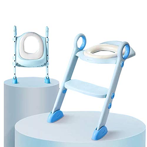 補助便座 子供 トイレ おまる オマル ベビー トレーナー トレーニング ステップ付き 踏み台 便座 補助 オマル 折りたたみ式 子供用補助便座 折りたたみ式トイレ (ブルー)