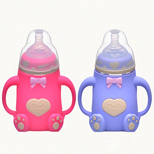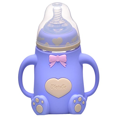 Baoblaze 赤ちゃん 幼児専用 母乳実感哺乳びん ミルクボトル 哺乳瓶 耐熱ガラス 240ml 全6色 - 青
