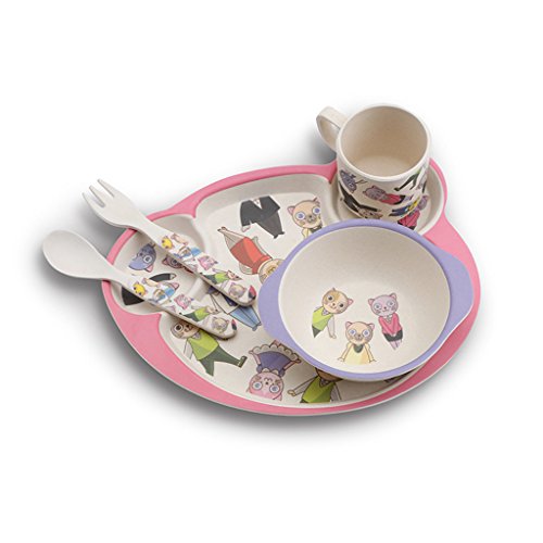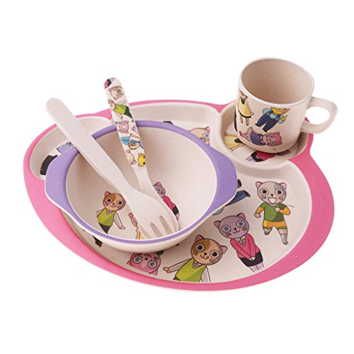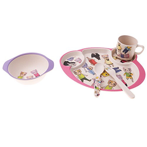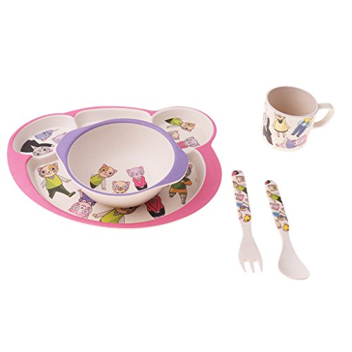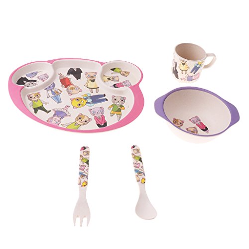 Baoblaze ベビー食器セット プレート ボウル カップ スプーン フォーク 赤ちゃん離乳期用食器 漫画食器セット - ピンク2