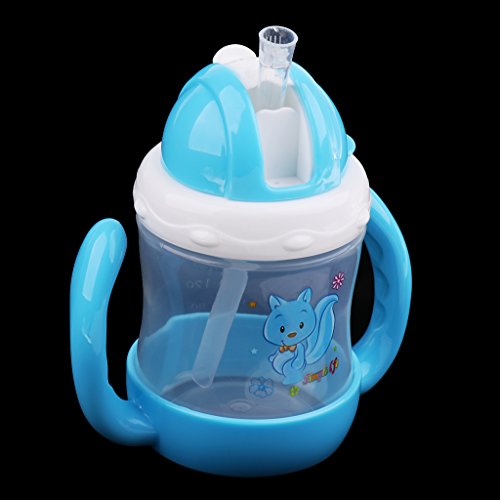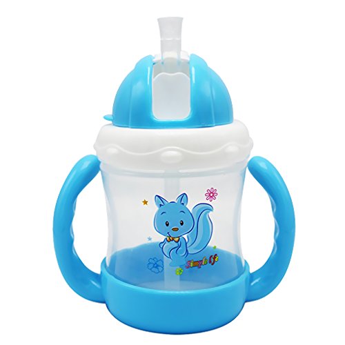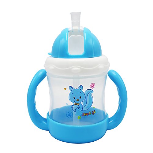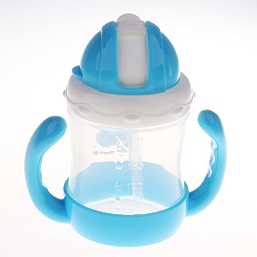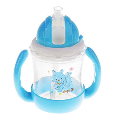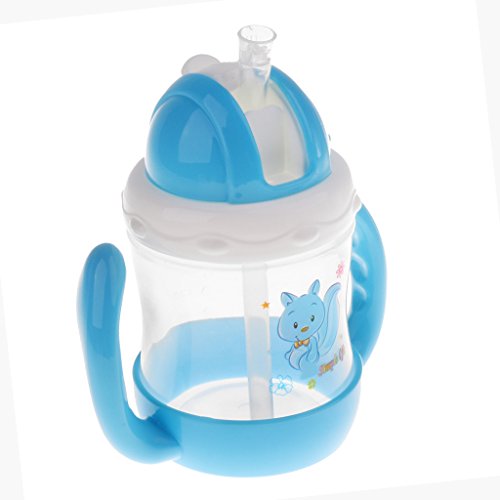 Baoblaze ベビー食器 ベビーマグ ストローカップ ストローマグ 幼児 飲料ボトル 全2サイズ お出かけ用 - 漫画ブルー, 240g