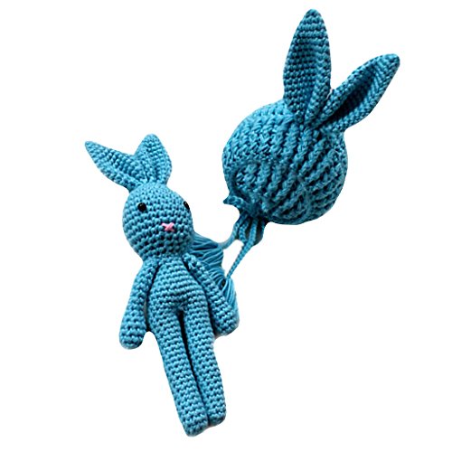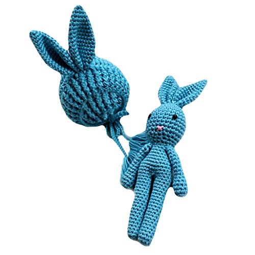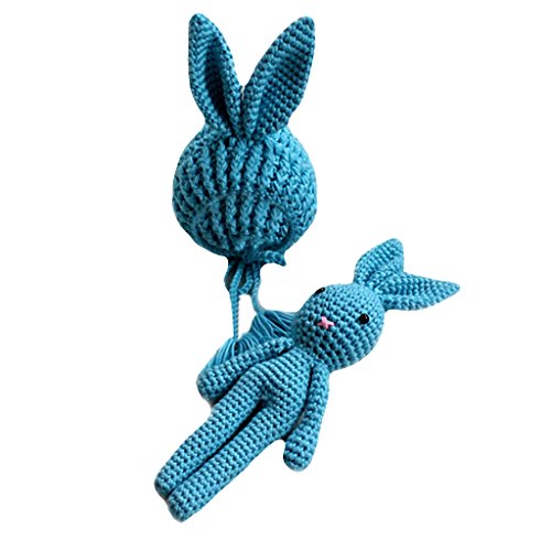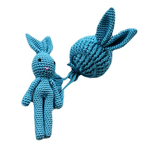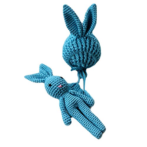 Baoblaze 赤ちゃん かぎ針編み 写真小道具 帽子 ウサギおもちゃ 全7色 - ブルー