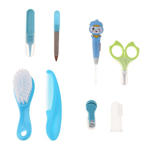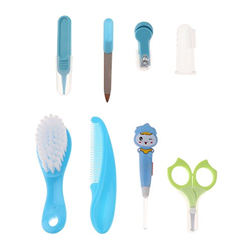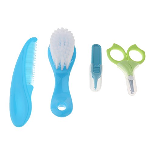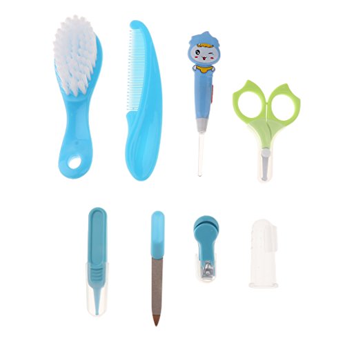 Baosity 赤ちゃん 子供 爪 ヘア ケア グルーミング ブラシ キット 8本セット 全2色 - 青
