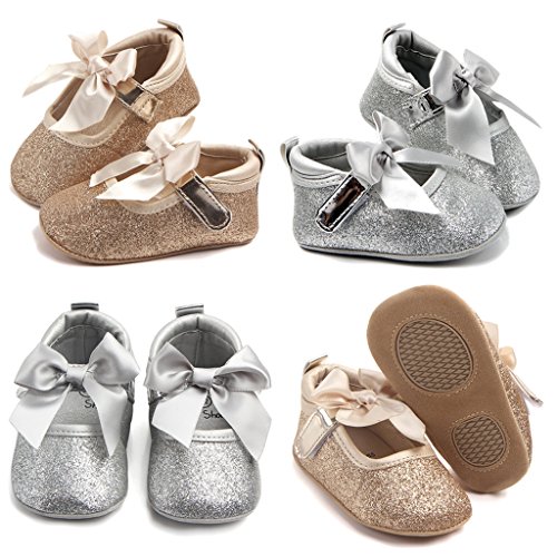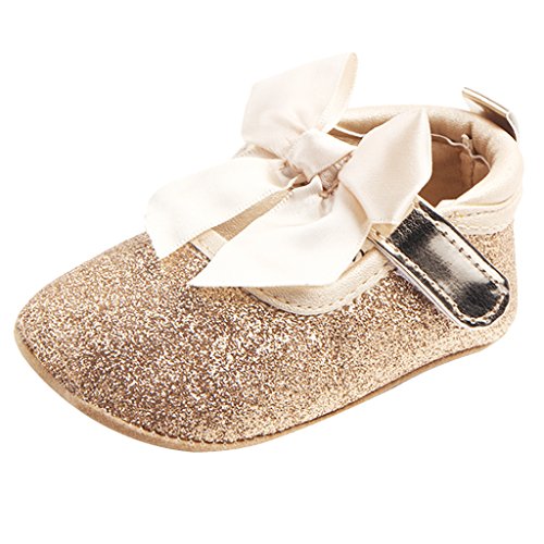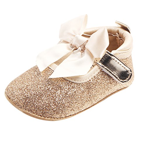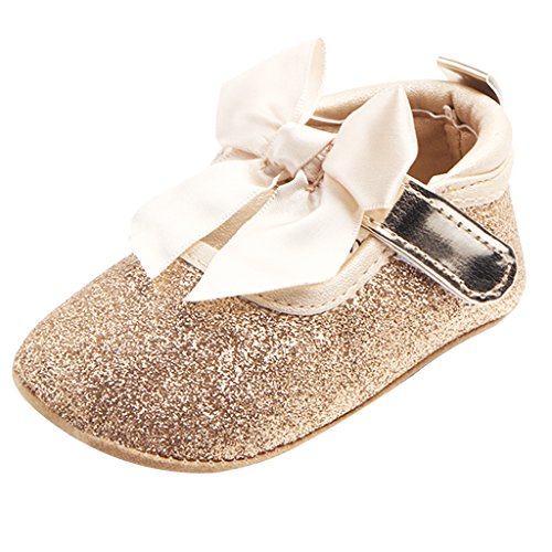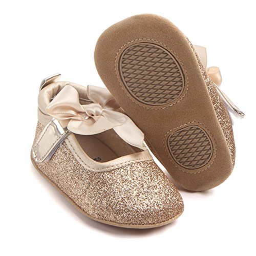Baosity 全3サイズ 赤ちゃん靴 王女の靴 女の子 滑り止め 防水 ちょう結び 輝く 履き心地いい靴 0-18ヶ月 - ゴールデン, 6-12ヶ月
