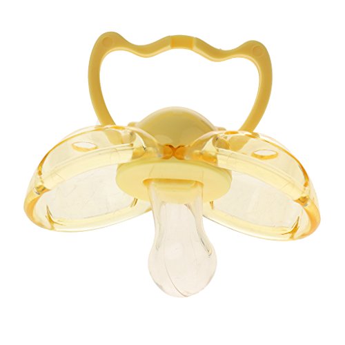 Baosity 全4色 ベビーおしゃぶり 歯列矯正おしゃぶり 食品グレードシリコン - イエローラウンドヘッド