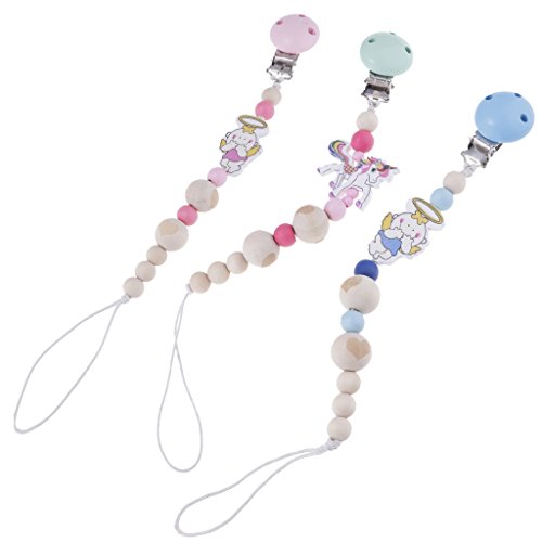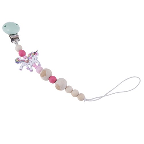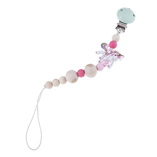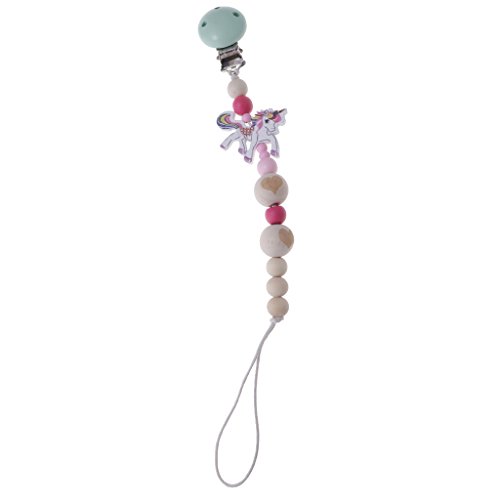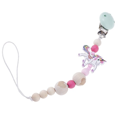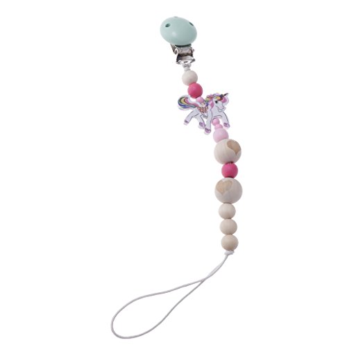 - 天然木ビーズ付きおしゃぶりクリップ。