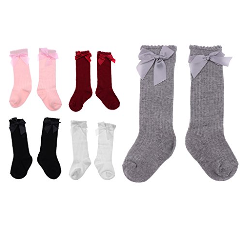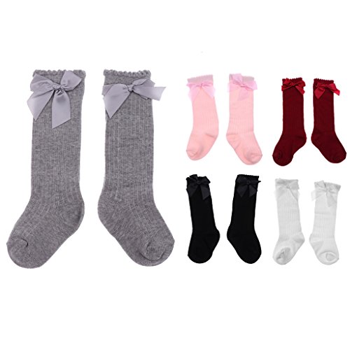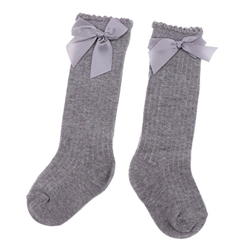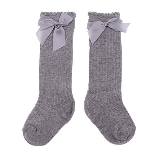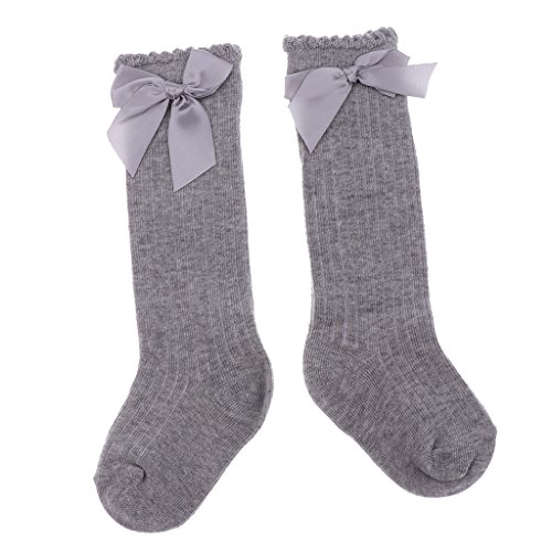 Baosity 滑り止め 赤ちゃん 子供 コットン ソックス ニーハイ ロング 弓 靴下 柔らかい 全5色 - グレー
