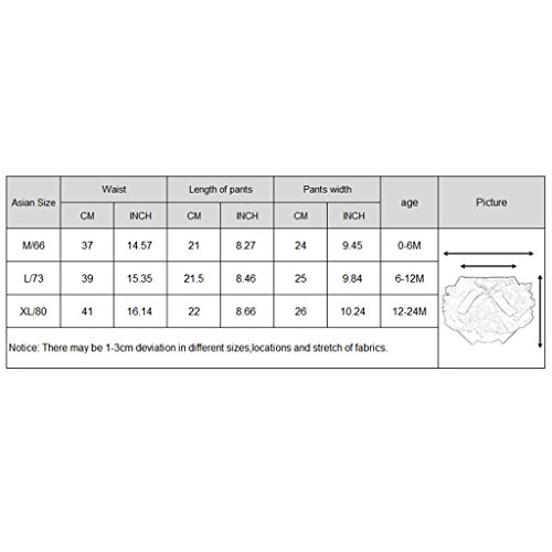 - Lサイズ:パンツ長さ:約21.5cm / 8.46インチ、幅:約25cm / 9.84インチ、ウエスト:約39cm / 15.35インチ(伸縮性あり)、6-12ヶ月間フィット