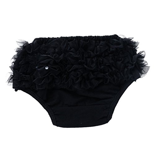 Baosity ベビー 女の子 フリル レース トレーニングパンツ ショートパンツ 柔らかい 綿 ショーツ ブリーフ 弾性 調節可能 全3色 - ブラック, 12-24月のXL