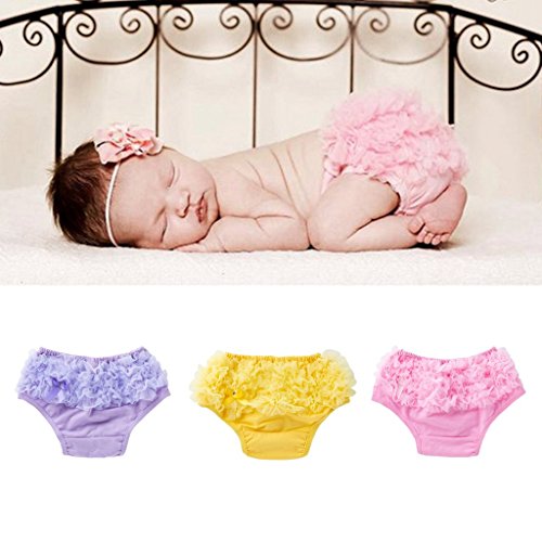 Baosity 赤ちゃん ベビー 女の子 トレーニングパンツ ショートパンツ ショーツ ブリーフ フリル レース 写真撮影 超かわいい 全3色 - ピンク, Mは0-6ヶ月