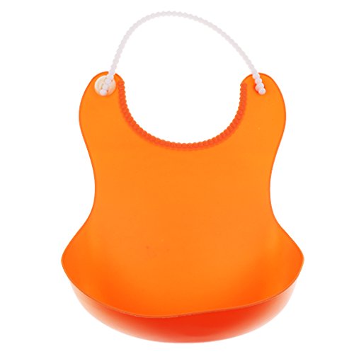 Baosity 全8色 ビブ 食事 ポケット付き ソフトシリコーン - オレンジ
