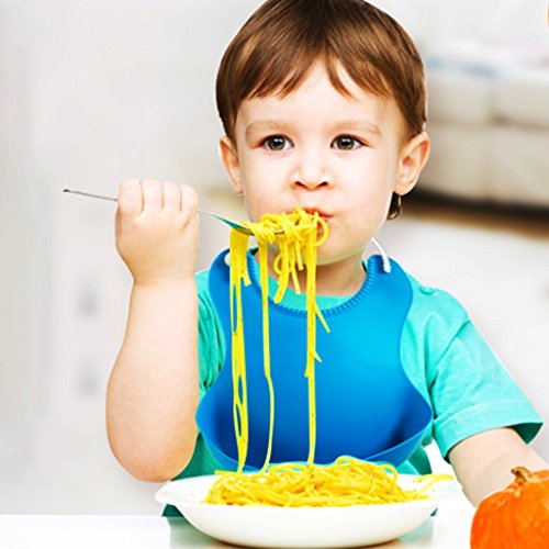 - 広いビブは赤ちゃんの衣服を保護します。深いポケットは食べ物を拾い、飲み物を飲むために使います。
