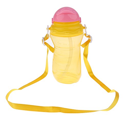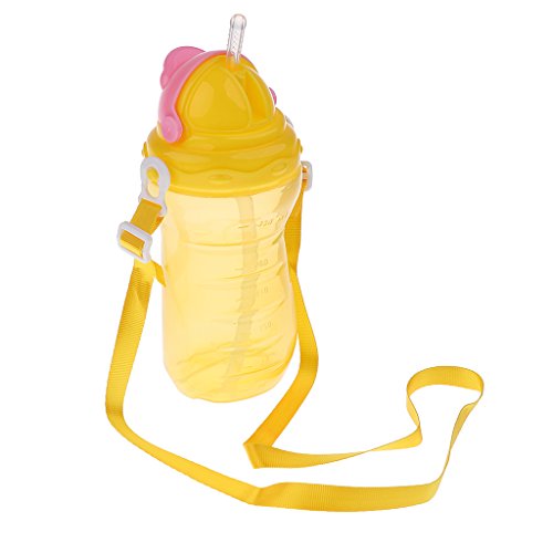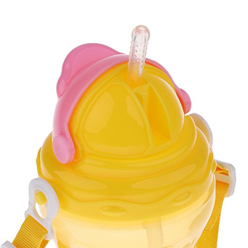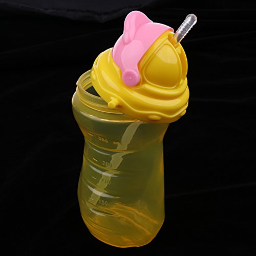 Baosity 赤ちゃん 子供 ウォーターボトル シリコーン 飲料瓶 幼児 新生児 ストロー スパウト カップ 350ml 通学 通園 全2色 - 黄