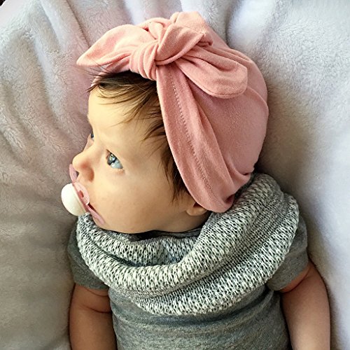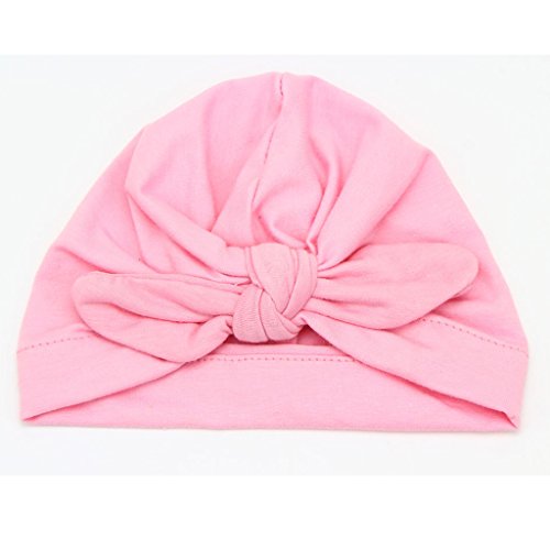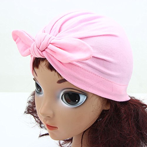 Baosity 幼児 新生児 赤ちゃん 弓 帽子 コットン ビーニー帽子 キャップ お宮参り/記念撮影 /誕生日 全7色 - ピンク