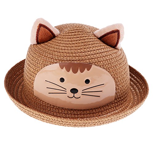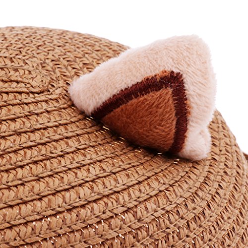 Baosity 全3色 女の子 男の子 帽子 麦わら ビーチ 秋 耳付き - 褐色