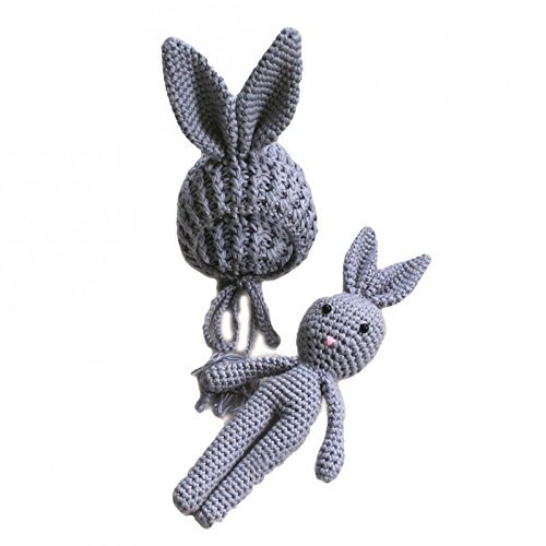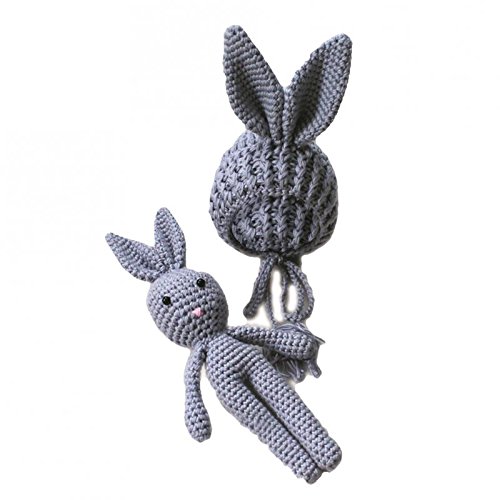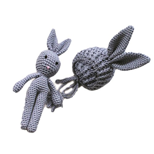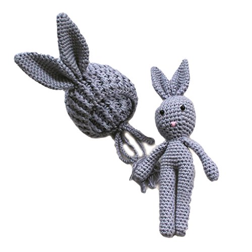 Baosity 赤ちゃん かぎ針編み キャップ ウサギおもちゃ 出産祝い 記念写真 寝相アート 小道具 全7色 - グレー