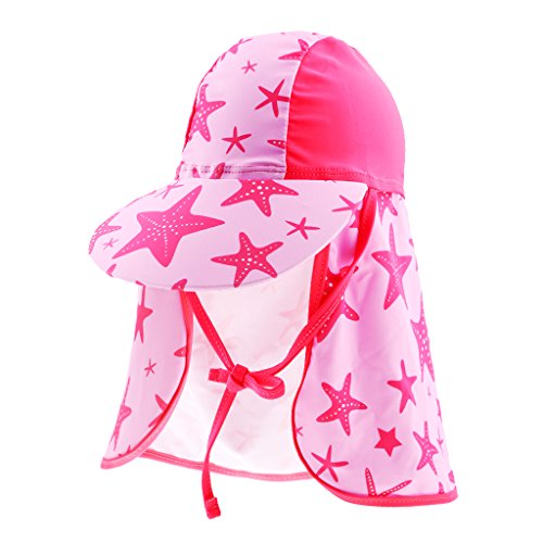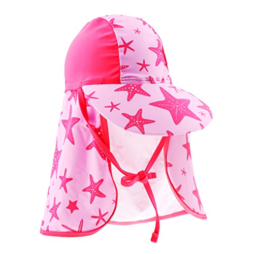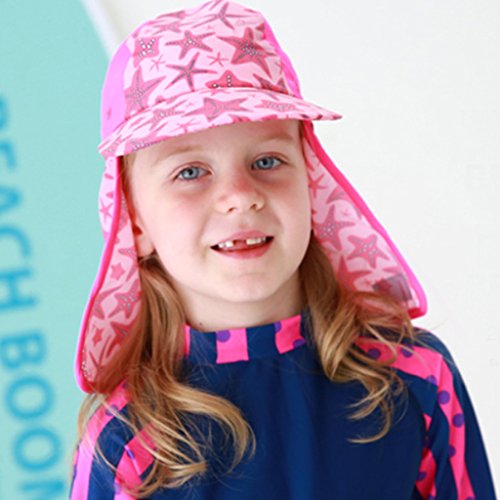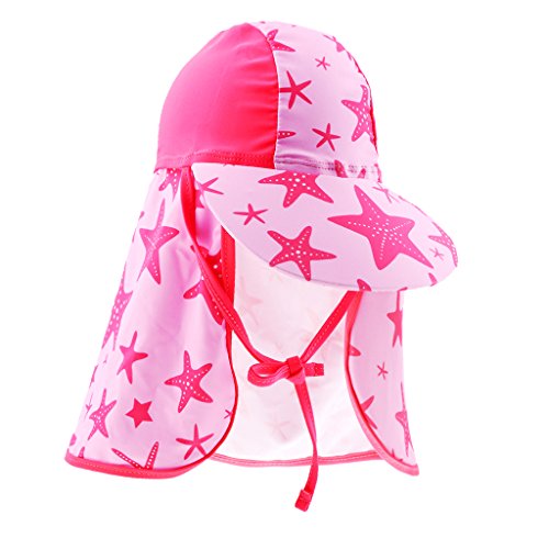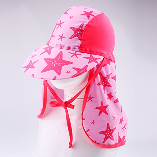 Baosity 子供水着用 日よけ帽子 日よけキャップ 垂れ布付き帽子 スイムキャップ 水泳帽子 女の子 男の子 紫外線対 全10種類 - ピンクの海の星