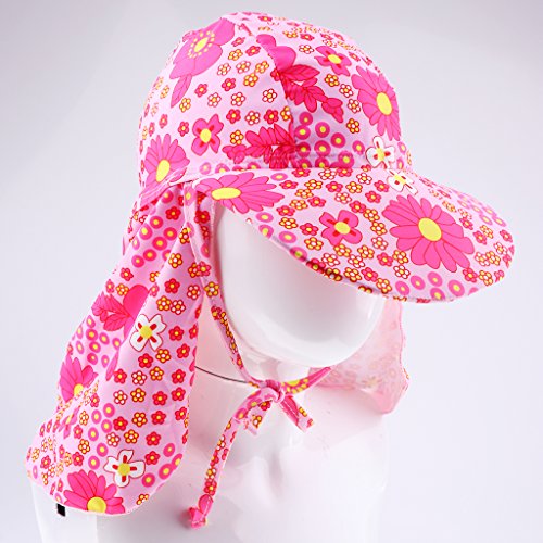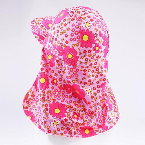 Baosity 子供水着用 日よけ帽子 日よけキャップ 垂れ布付き帽子 スイムキャップ 水泳帽子 女の子 男の子 紫外線対 全10種類 - ピンクの花