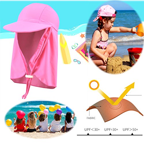Baosity 子供水着用 日よけ帽子 日よけキャップ 垂れ布付き帽子 スイムキャップ 水泳帽子 女の子 男の子 紫外線対 全10種類 - 赤