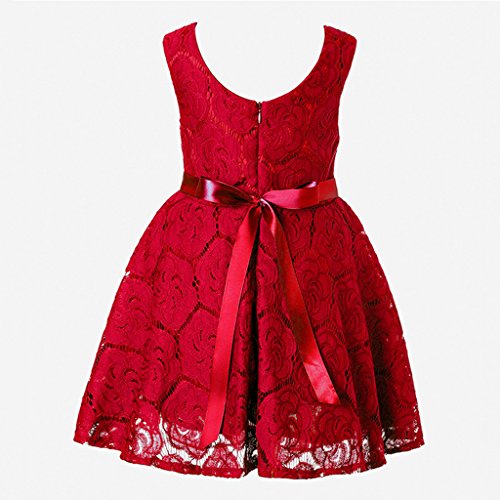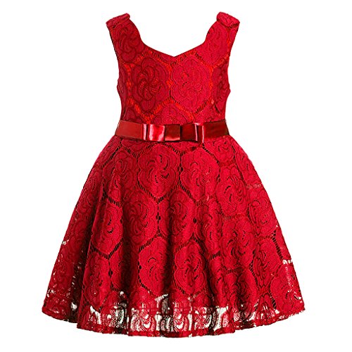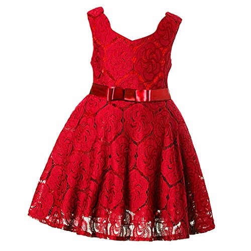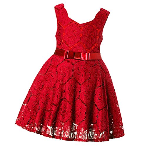 Baosity 可愛い女の子 キッズ レース 刺繍 蝶結び 花柄 夏 ワンピース スカート ドレス ダンス パーティー 演奏会 コンサート 舞台出演 全3色7サイズ - レッド, M