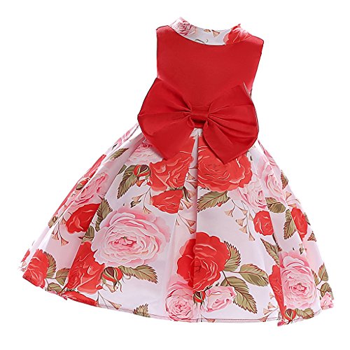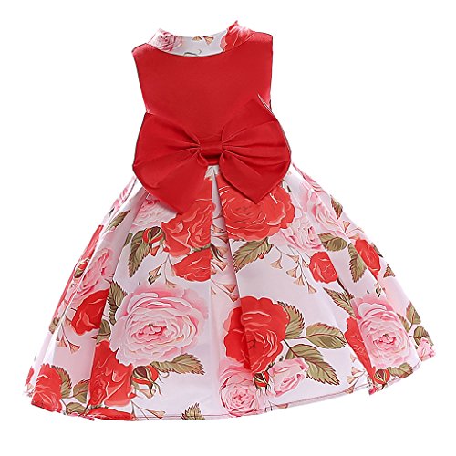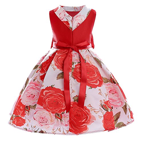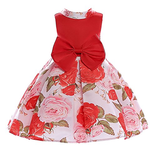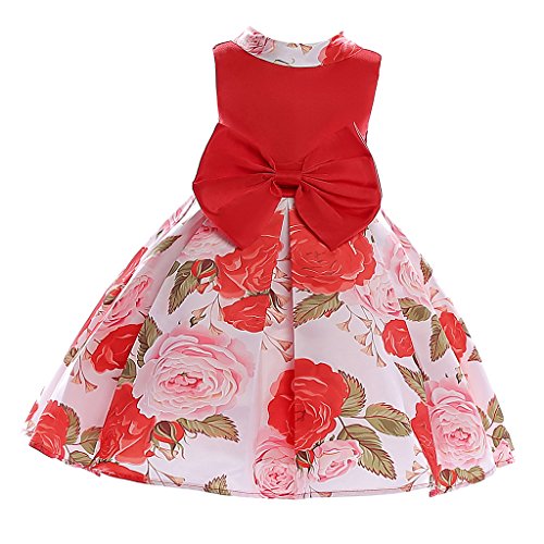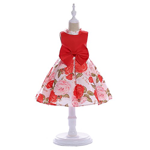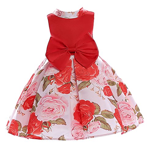 Baosity 花柄 明るい ワンピース フラワー ドレス 洋服 子供 女の子 プリンセス ちょう結び パーティー 入園式 演奏会 発表会 結婚式 全2色6サイズ - 赤, 9〜10歳