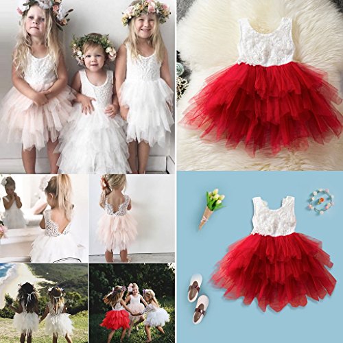 Baosity 全5サイズ ベビー 女の子 ドレス ソフト 通気性 休日 - 赤, 18-24 M