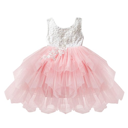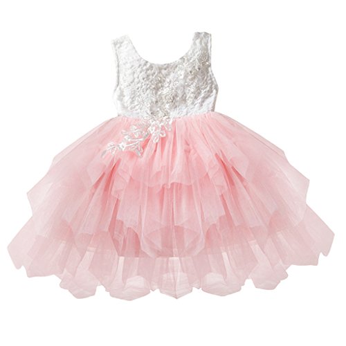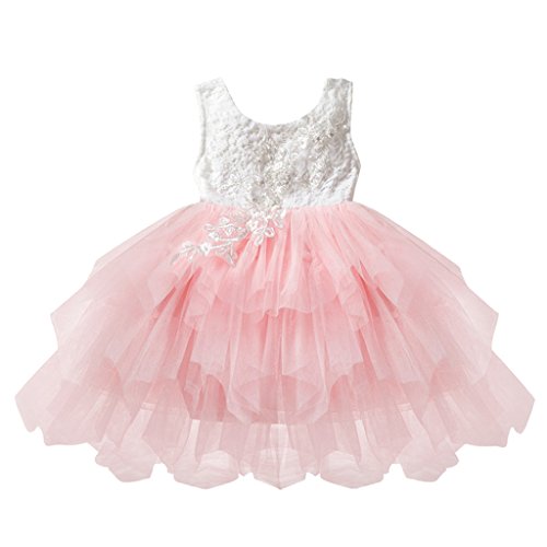 Baosity 全4サイズ キッズ ドレス レースドレス 誕生日パーティードレス - ピンク, 3T