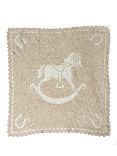 " BAREFOOT DREAMS " オリジナルのふわもこのマイクロファイバーを使用したミニブランケット...なめらかで極上の肌触りは、一度手にしたらやみつきになるほどの心地良さです♪抗菌性、吸水性、放湿性に優れており、夏は涼しく冬はあたたかいのでシーズンを通してお使いいただけ、ご家庭でお洗濯していただけるのもうれしいポイント!赤ちゃんを包み込んであげるのにちょうど良いサイズで、極上の肌触りがベビーを素敵な夢の世界へと連れていってくれそう... 出産祝いなどのギフトにも最適です☆4種類の異なる色と柄をご用意。【 white 】は自転車、【 ivory 】は木馬、【 pink 】ピンクはドレス、【 blue 】ブルーは飛行機 が描かれ、とってもキュート!お子様の性別でチョイスできる様になっているので、プレゼントにオススメです。