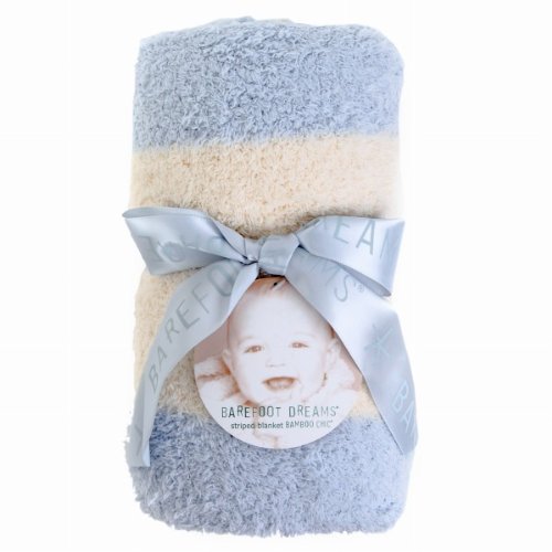 ベアフットドリームス / Barefoot Dreams CozyChic Striped Receiving Blanket [ #517 ] コージ シック ストライプ レシービングブランケット(:、カラー:blue/cream